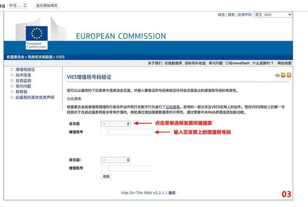 在申请退税前,您可以点击以下链接访问欧盟官方网站,对手里的增值税发票进行自助查询和验证有效性。