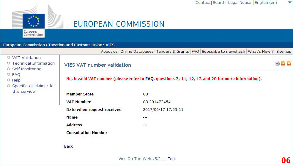 而对于无效的VAT Number,系统是查不到相关公司注册资料的哦!